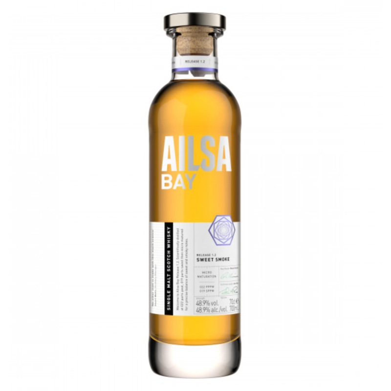 Ailsa Bay 1.2 Sweet Smoke is distilled at Girvan, near Ailsa Craig. This Scotch whisky undergoes a unique micro-maturation process where the spirit is first aged in small ex-bourbon casks for rapid maturation, then transferred to virgin, first-fill, and refill American oak casks for several years. Bottled at 48.9%