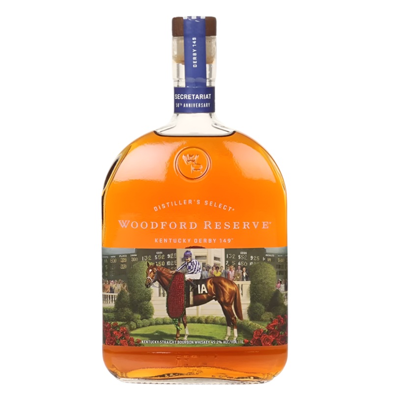 Woodford Reserve Derby 149 is a special edition bourbon celebrating the 50th anniversary of Secretariats historic 1973 win. This 1L bottle features custom artwork and the classic rich, smooth Woodford flavor. A perfect keepsake for bourbon lovers and Derby fans. Bottled at 45.2% ABV